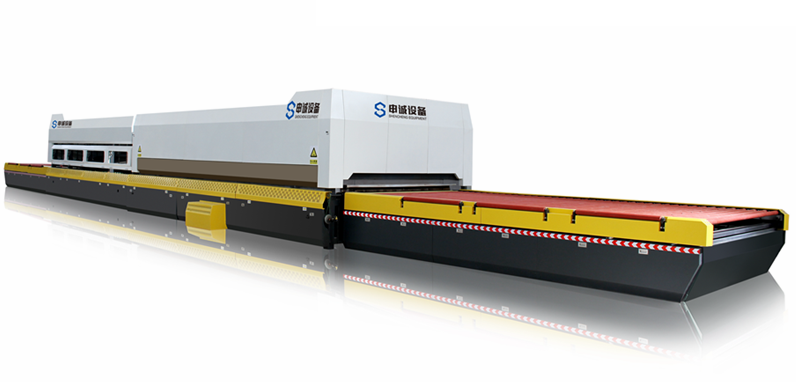 1.數(shù)倍于常規(guī)設(shè)備的爐長和風(fēng)柵,可以使玻璃在單向運(yùn)動中被加熱到可鋼化溫度,并被迅速鋼化、冷卻;